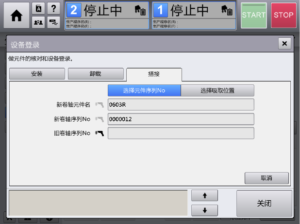 (d) 新卷轴序列 No 输入要搭接的新卷轴之元件序列 No 或读入条形码。