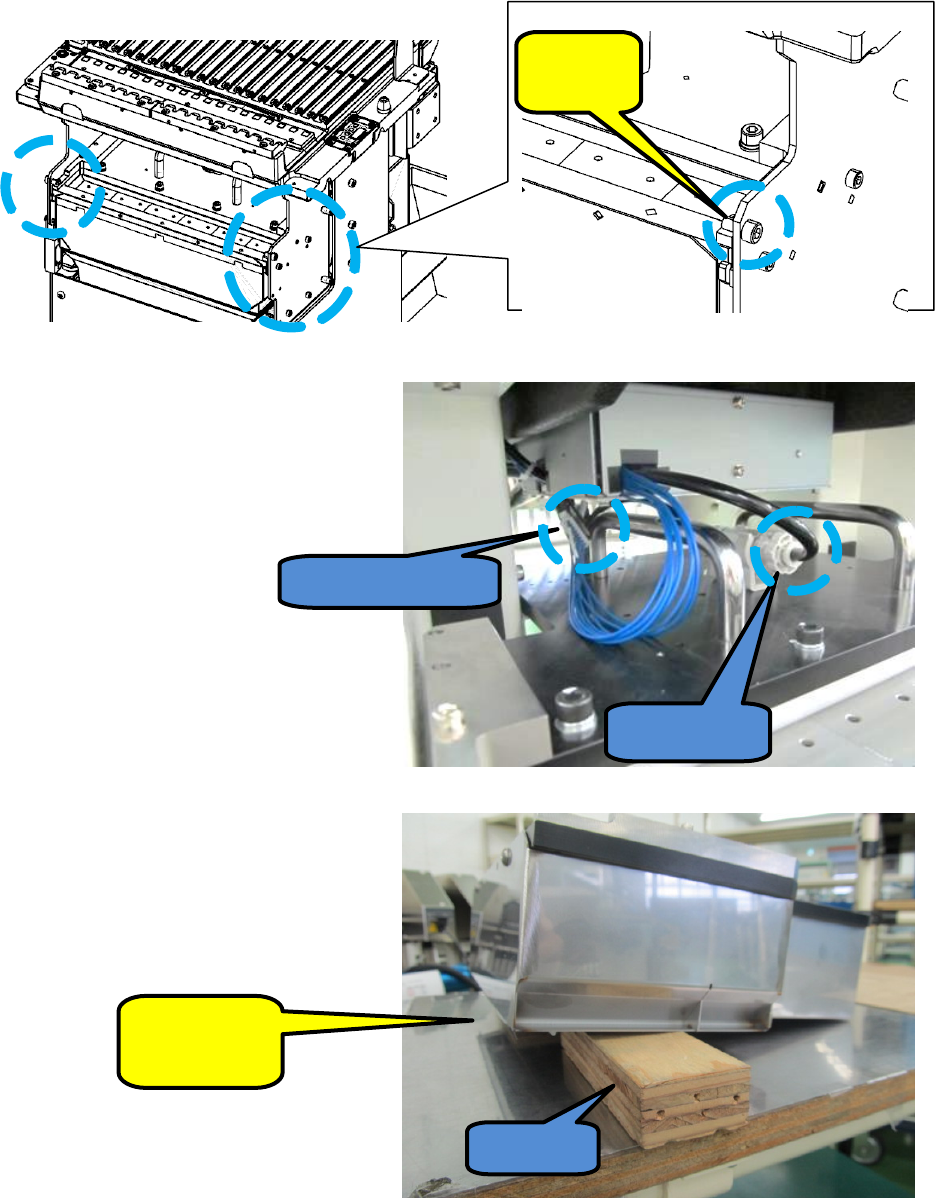 第 5 章 维护篇 5- 2. 保养检查 43 5 ETF 用台架部 切带器单元 (EF) 的清扫 < 注意事项> ・ 操 作切带器单元时,请 注意带上手套以免受伤。 ・ 台 车已安装到贴片机, 需要解除该安装时,必须通 过画面操作使台车下降。 使用阀开关手动下降时 ,切带器处于打开状态,非 常危险。 ・ 如果拆下的切带 器单元的刀刃是打开状态, 则请在该状态下进行重新安 装,操作贴片机,使台车 上下运动。 1. 按 照右图,从侧面拆下…