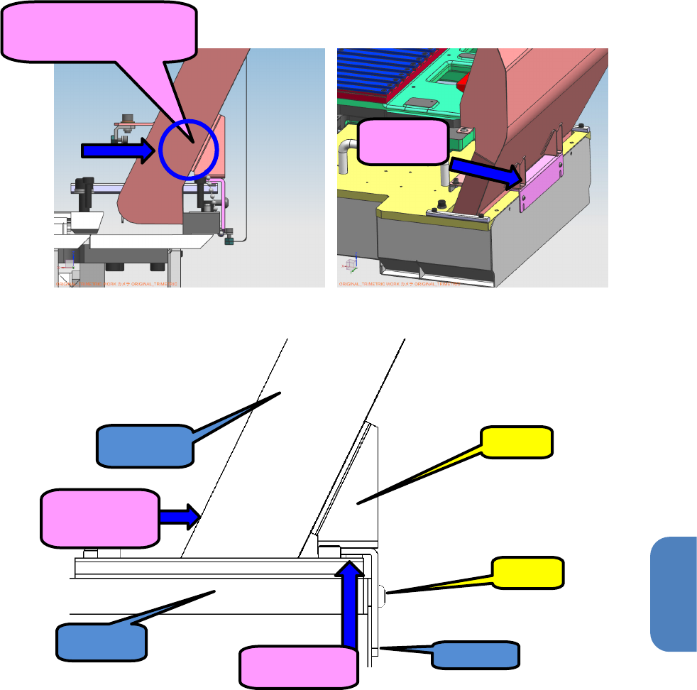 ⅱ:装回切带器单元时,请注意不要使从下部伸出的薄金属片搭在废弃导管上。