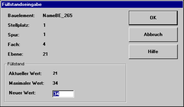 Die Schaltfläche "Neuer Füllstand..." ist aktiv.