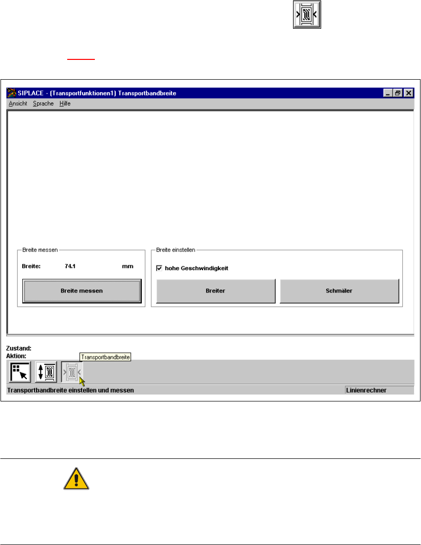 5 Einzelfunktionen Betriebsanleitung SIPLACE F5/F5 HM 5.3 Einzelfunktionen Transport Softwareversion S R.407.xx Ausgab e 01/2001 DE 220 5.3.2.1 Allge meines In der An sicht " T ran sportban dbreite" s tehen a l…