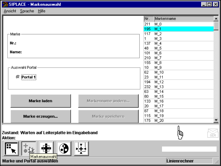 Die Schaltfläche ’Marke laden’ ist beispielsweise nur aktiv, wenn Sie zuvor im Listenfeld eine