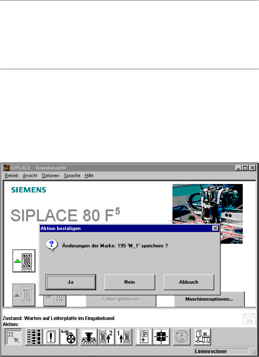 Betriebsanleitung SIPLACE F5/F5 HM 6 V isionfunktionen Softwareversion SR.407.xx Ausgabe 0 1/2001 DE 6.5 Marke t eachen 261 6.5.3 Men ü ’ Markena uswa hl ’ Bei W ahl der Option ’ Marke teachen ’ im M en ü ’ Grundansicht …