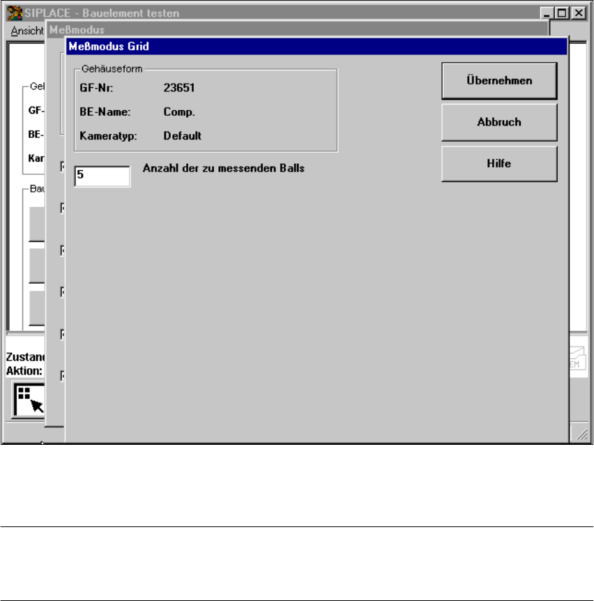 6 Visionfunktionen Betriebsanleitung SIPLACE F5/F5 HM 6.6 Bauelement test en Softw areversion SR.407.xx Ausgabe 01/2001 D E 348 6.6.4.21 Messmodus ’ Ball ’ Nach Anklic ken der Scha ltfl ä ch e ’ Ei nst ellen ’ im Mess mo…