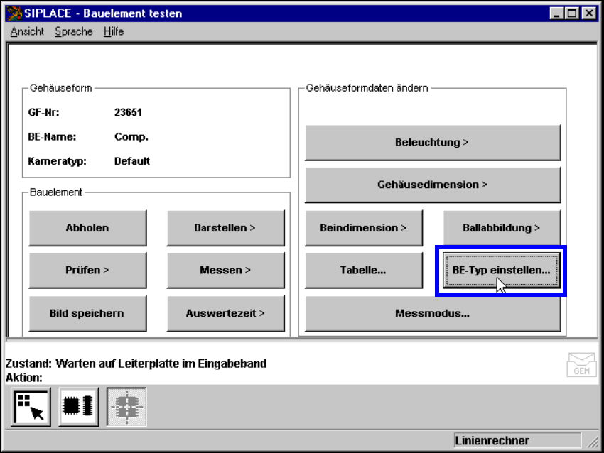 Abb. 6.6.43 Menü ’Bauelement testen’, Option ’BE-Typ einstellen’ (nur bei F-Automaten)