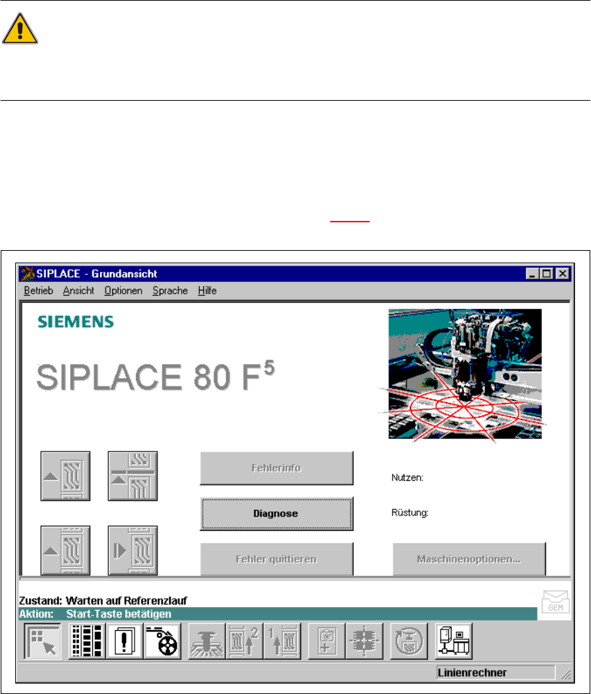Betriebsanleitung SIPLACE F5/F5 HM 7 Was ist zu tun ... Softwareversion SR.407.xx Ausgabe 0 1/2001 DE 7.1 SIPLACE -Linie einschalten 391 7.1.3 St ation einschalten / Bedienoberfl ä che des S R-Programm s st arten ACHTUNG…