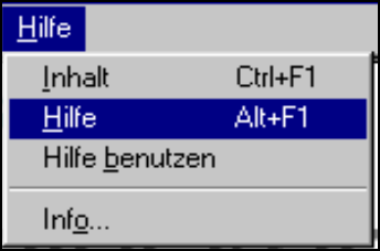 Eintrag Hilfe an. Das Menü "Hilfe" wird geöffnet.