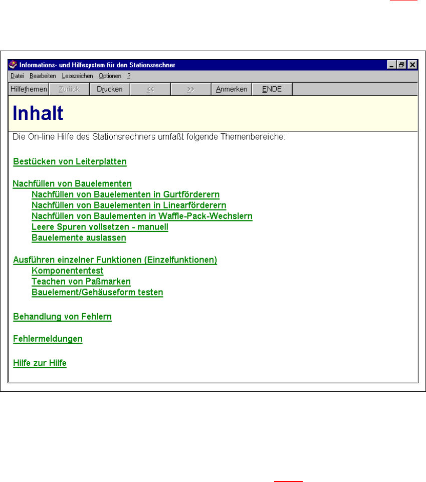 Das Hauptfenster des Hilfesystems für den Stationsrechner wird geöffnet (siehe Abb. 9.1 - 1