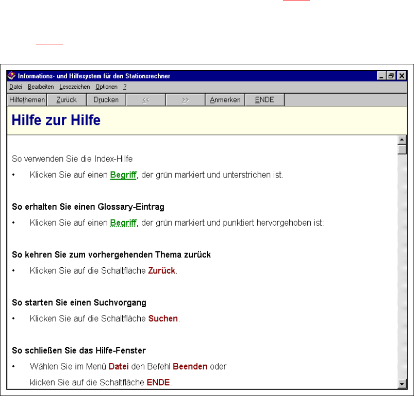 strichen dargestellt. Wird so ein Eintrag angeklickt, schaltet der Anzeigebereich auf die Hilfe