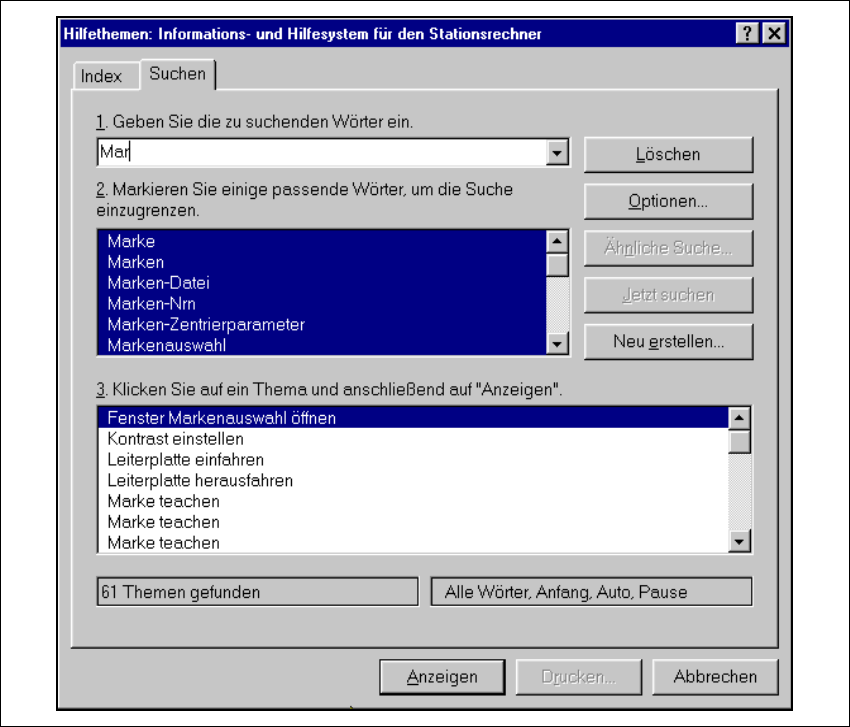 Abb. 9.1 - 8 Fenster "Hilfethemen" (Suchen)