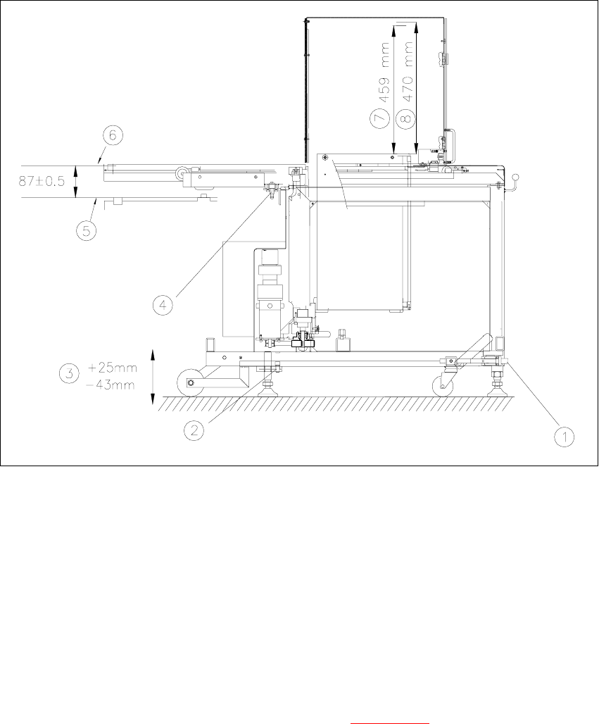 Å Kontrollieren Sie das Maß (87 +/- 0,5mm), Unterkante Magazinträger zu Oberkante BE-Tisch