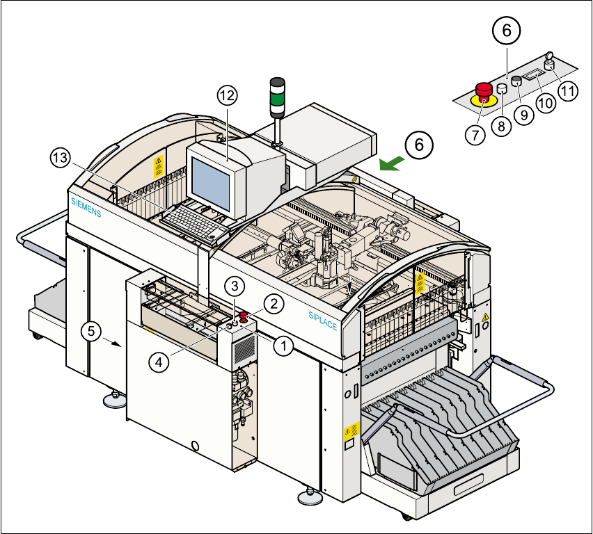 Mit diesem Taster halten Sie den Bestückbetrieb des Automaten an. 1
