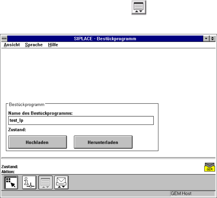 Das Bestückprogramm, dessen Name im Editierfeld eingegeben wurde, wird vom Hostrechner