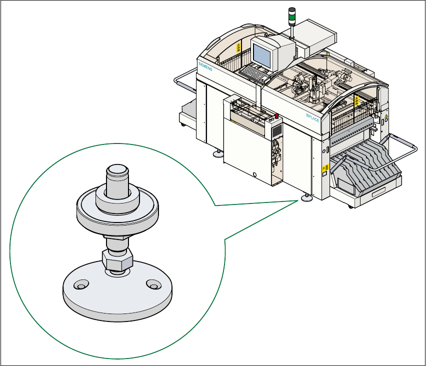 In erdbebengefährdeten Gebieten ist es notwendig, den Bestückautomaten gegen Verrutschen zu