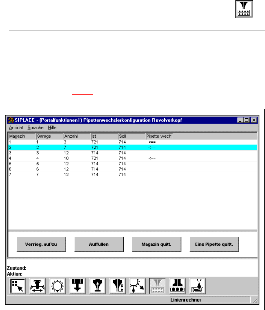Bei Aufruf dieser Ansicht werden die Pipetten, die sich am Bestückkopf befinden, abgelegt.5