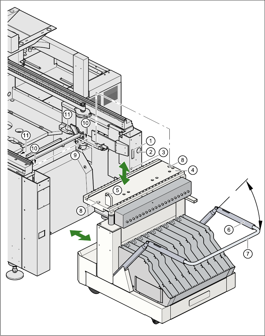 Å Klappen Sie den Bügel (Pos. 7) des BE-Wechseltisches nach oben.