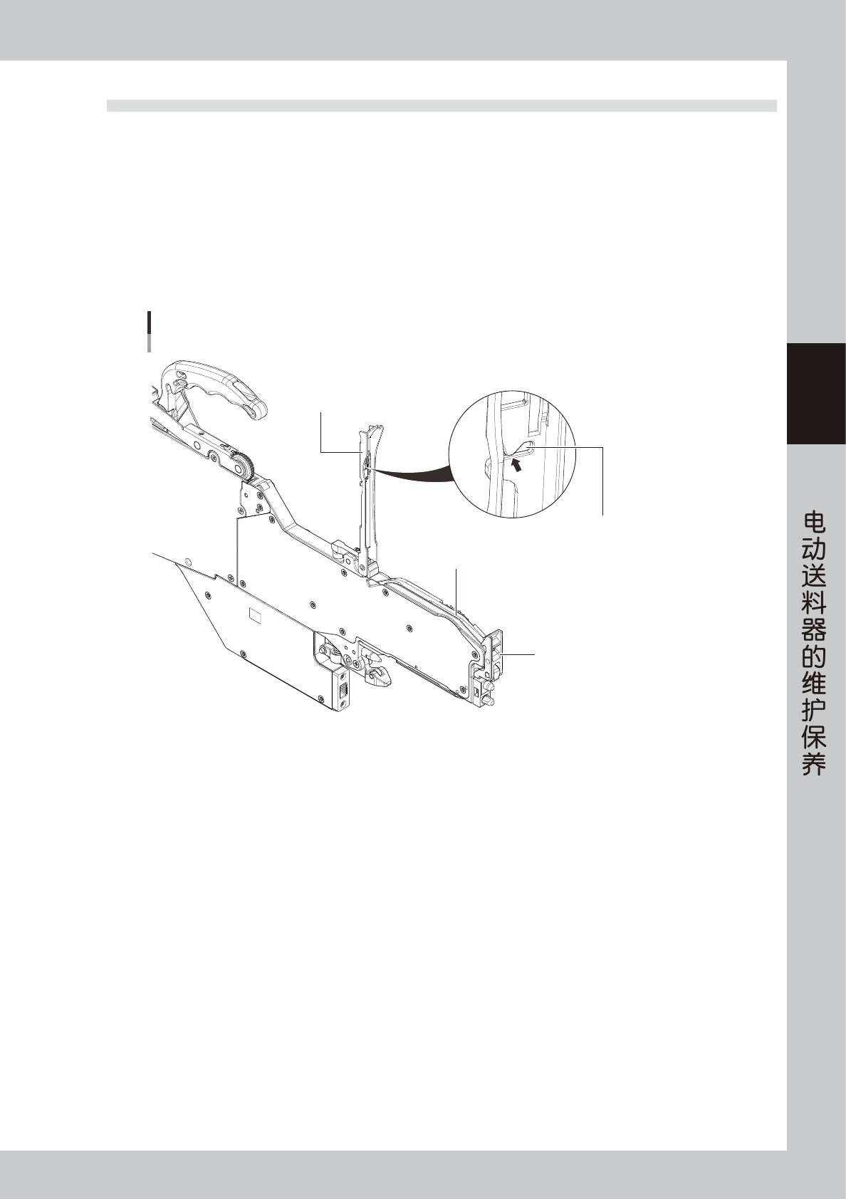 1. 用棉棒等清除压料盖内侧与送料器机架走带面的元件与尘屑之后,用喷气工具喷气吹除尘屑。