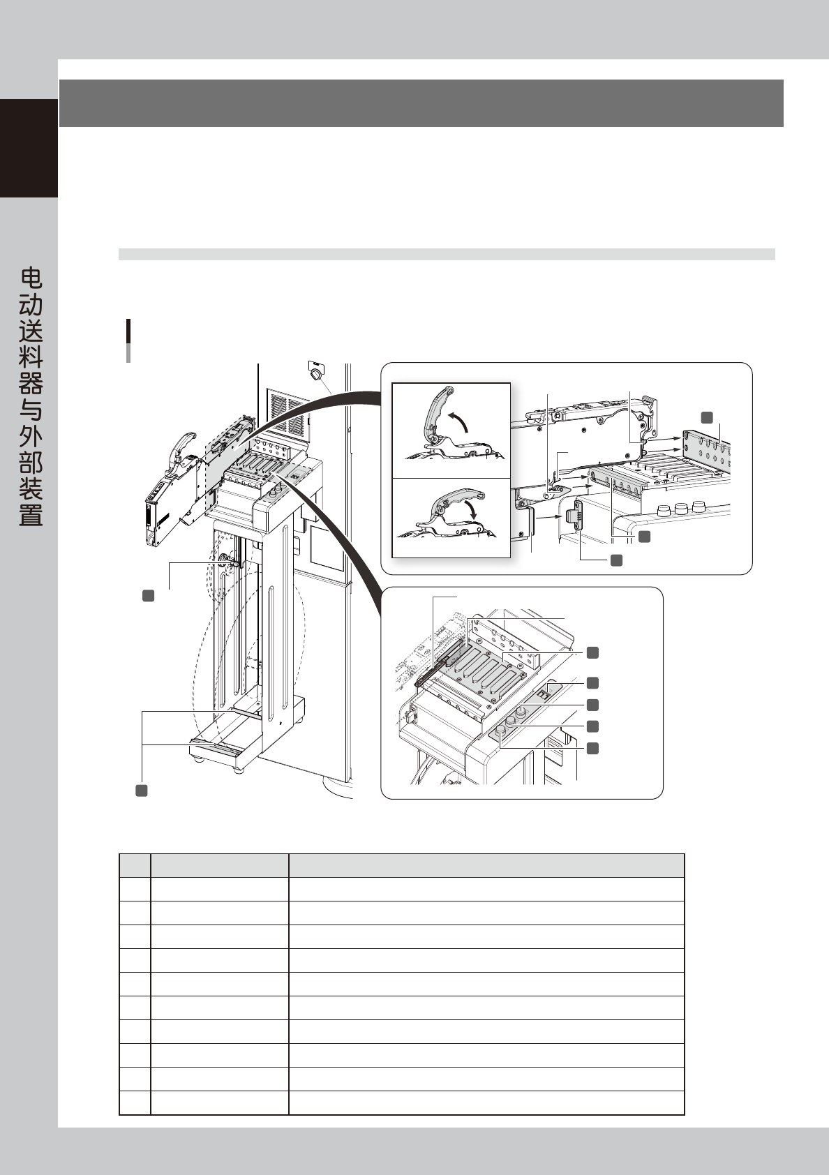 SS 电动送料器 ( 简称“送料器”) 用的外部装置有上料台、离线上料台、一次性换料车 ( 简称“料车”) 与料车用电源。
