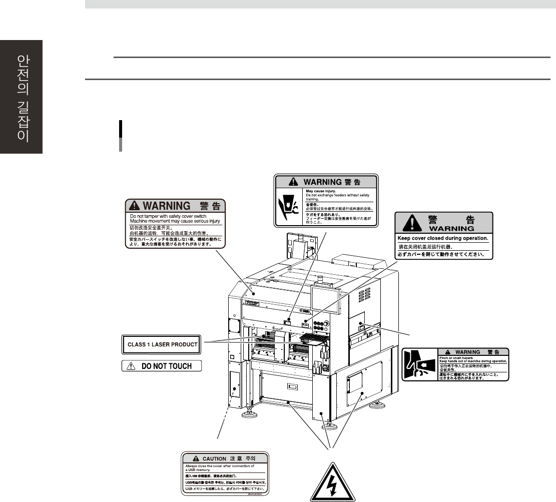 장비를 정확하고 안전하게 사용하기 위해서 , 본체 각부에 다음과 같이 경고표시 라벨이 부착되어 있습니다 .