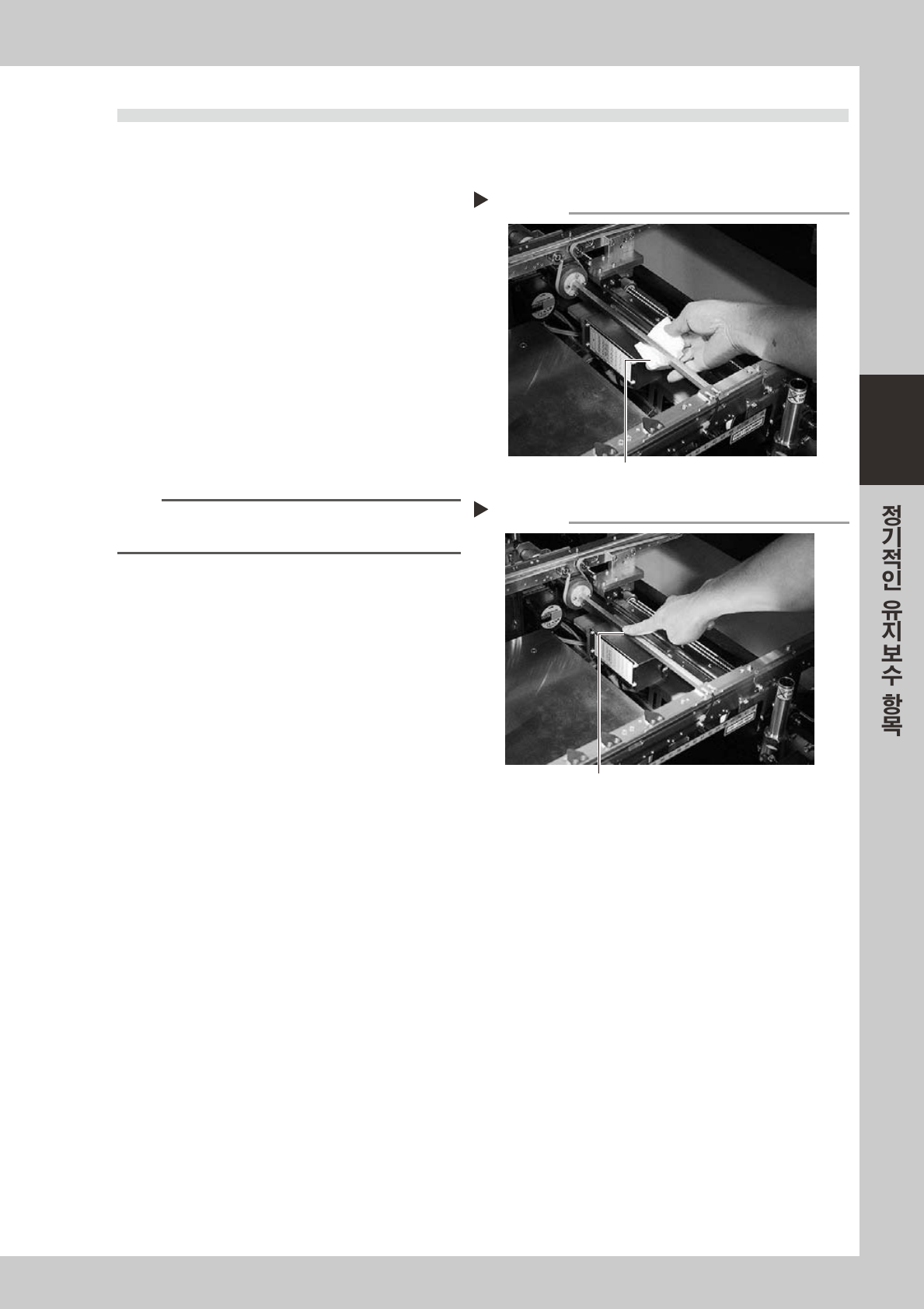 3-27 3 3 . 6 6 각 스 플라인의 청소 • 급유 W 축 컨 베 이 어 의 6 각 스 플라 인 의 청 소와 급 유 방법 에 대해서 설 명 합니 다 . 급 유 개소와 급유형 태 에 관해서는 , 제 4 장의 「급 유 개 소 일 람 표 」를 참조해 주 십 시 오 . 그리 스 건 과 지정 그 리스 ( N SL ) 를 준비하여 주 십 시 오 . 1 6 각 스 플라 인부 를 청소합 니다 . 1 …