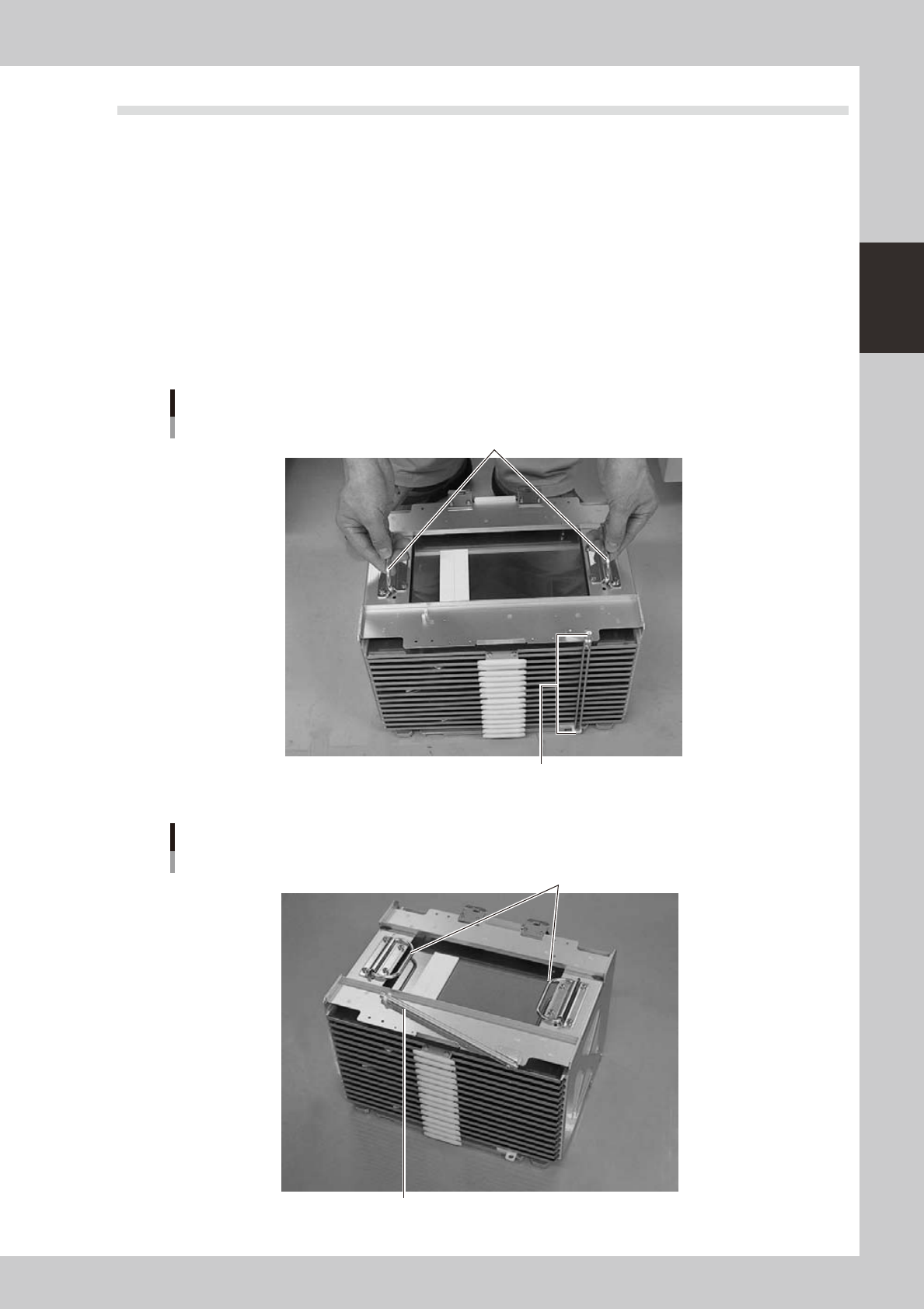 upper surface as shown in photo B. Also be sure to always fold the left and right handles down on the top section.