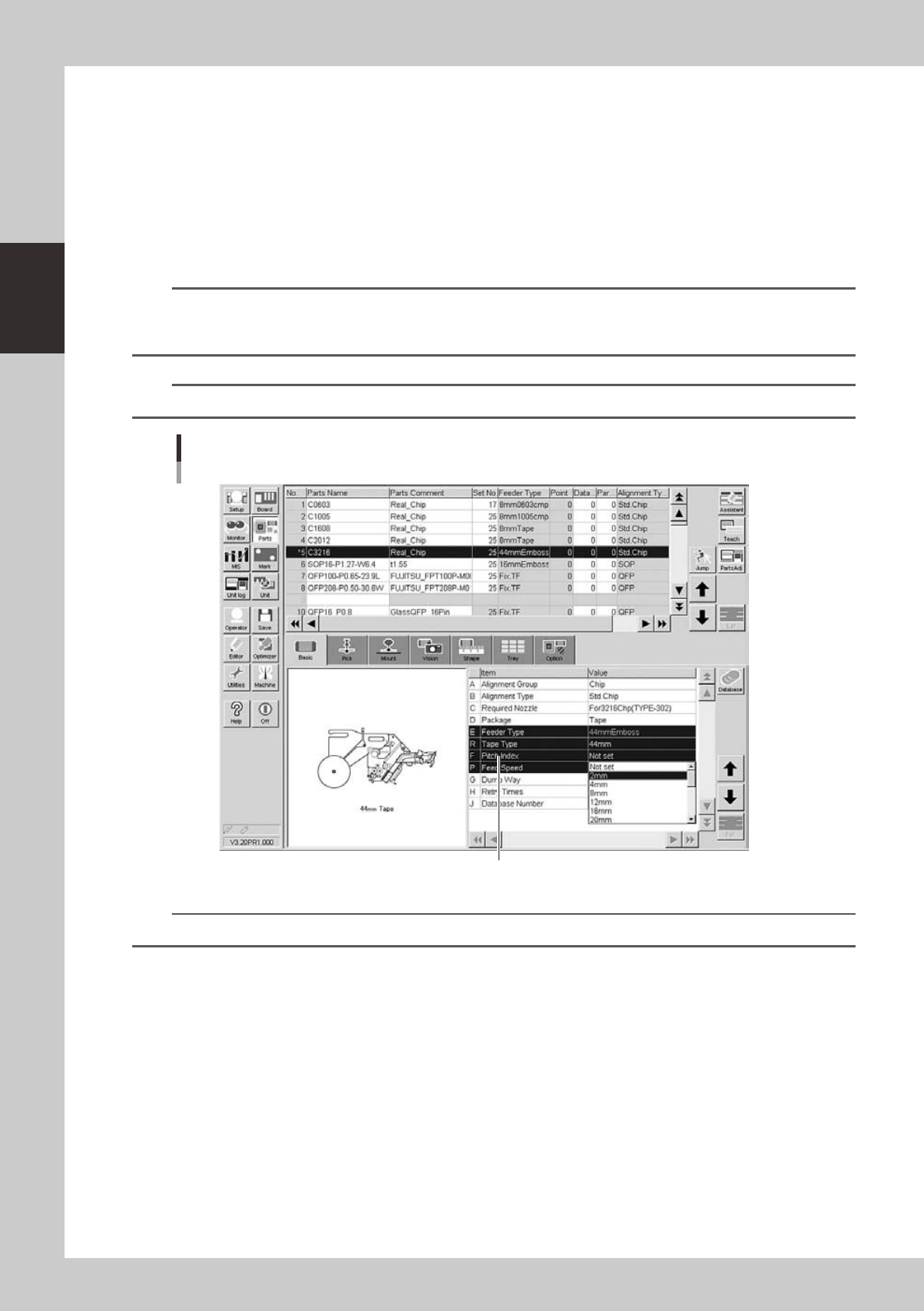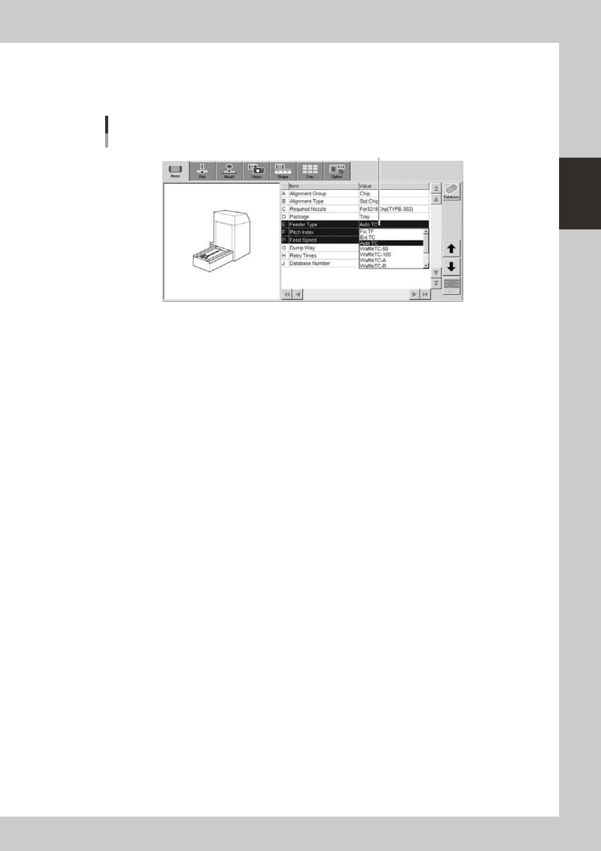 2-53 2 asic operation n When using tray components 6 Set the "F eeder T ype" parameter . Select "Auto TC" from the drop-down lis t. [Parts]-[Basic] screen "Feeder T ype" parameter "Fe…