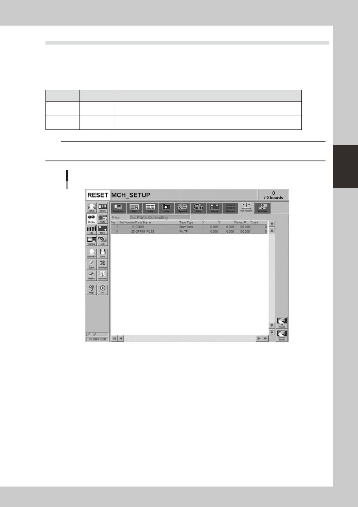 3-25 3 Starting and ending pr oduction 3.9 Pick Pos. (Pickup position of fset) T his screen appears when the pickup position offset function is used. This screen sho ws how the pic kup position of the target component wa…