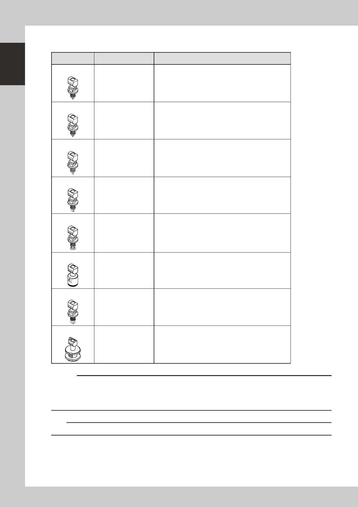 No. Table Head No. Nozzle Type No. Table Head No. Nozzle Type No. Table Head No. Nozzle Type