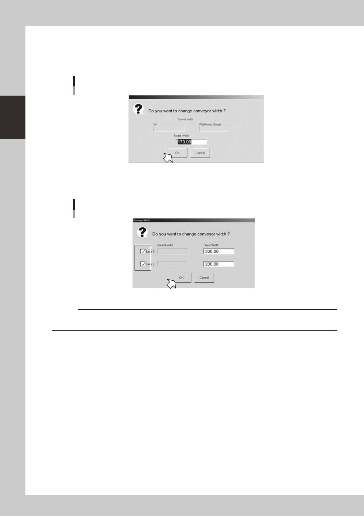 Pressing this button displays the "Conveyor Width" dialog box. Check the conveyor width and press the [OK] button. The