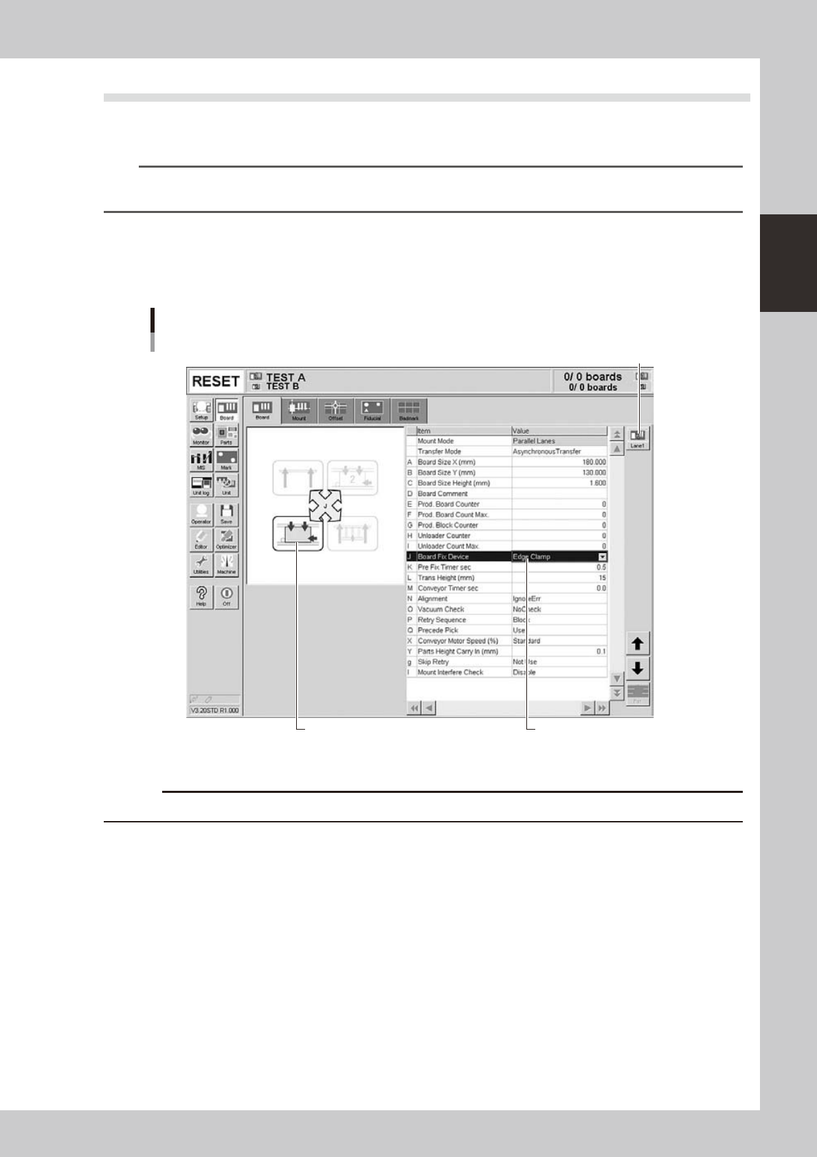Select "Edge Clamp" for the board clamping method. This method clamps a board by pushing up its edges against the