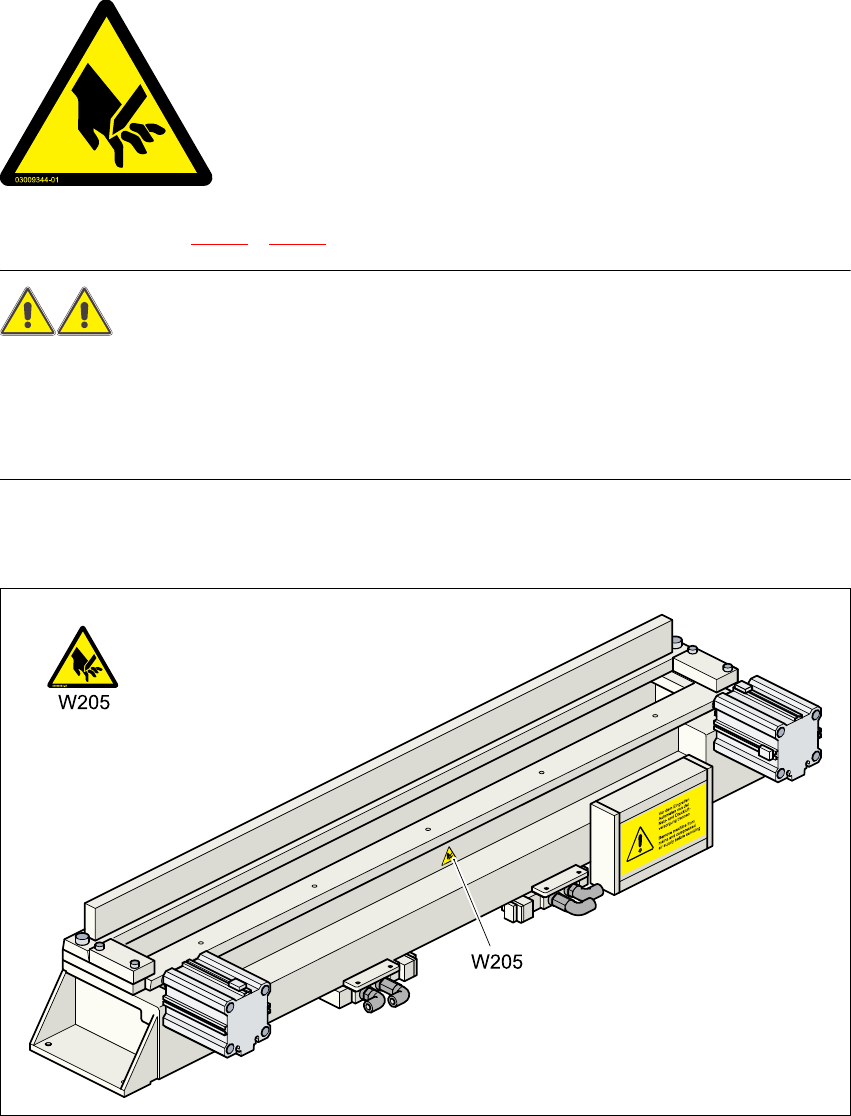 Fig. 2.2 - 4 Aviso de advertencia W205 en la cortadora de cinta