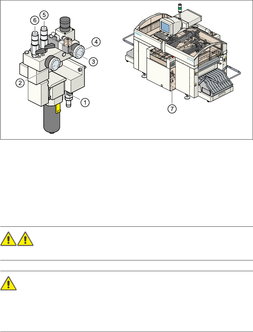 2 Seguridad de servicio Instrucciones de servicio SIPLACE S-27 HM 2.7 Bloqueo de la alimentación de aire comprimido y reducción de presión Versión de softw are SR.503.xxEdición 07/2003 ES 62 La pres ión de servic io del …