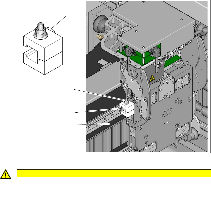 松开支撑架 (2) 上的螺丝 (1),以便支撑架可从线性导轨上轻松取下。