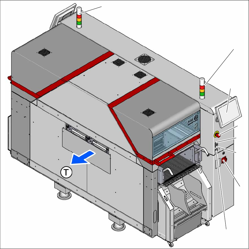 (4) Stop (停止)按钮 (黑色) (T) PCB 传送方向