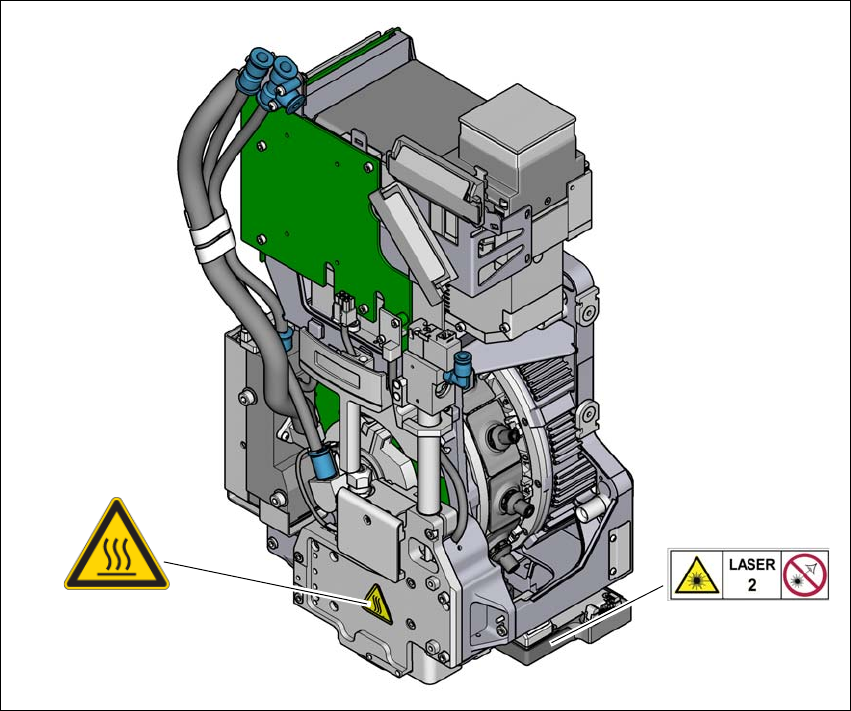 2 操作安全 使用手册 SIPLACE TX 2.2 警告标签 使用软件版本 714.0 或更新 12/2020 58 2.2.9 SIPLACE MultiStar CPP / CPP M 上的警告标签 2 图 2.2 - 11 SIPLACE MultiStar CPP / CPP M 上的警告标签 (1) 高温标签,部件号 03031926-01 项目 激光器标签 - 风险级别 2,部件号 03155298-xx (1) 激光器标…