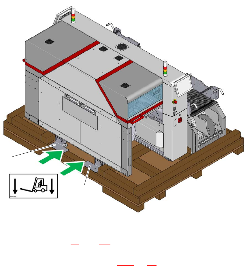 (3) 切勿使用叉车在元件料车位置将贴片机吊起!侧倾的危险!