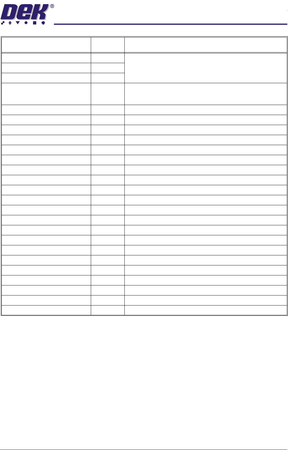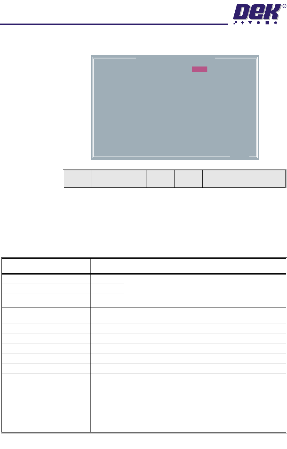 Table Position (mm) Machine Values from the last print cycle. This value is the Set Print Height,