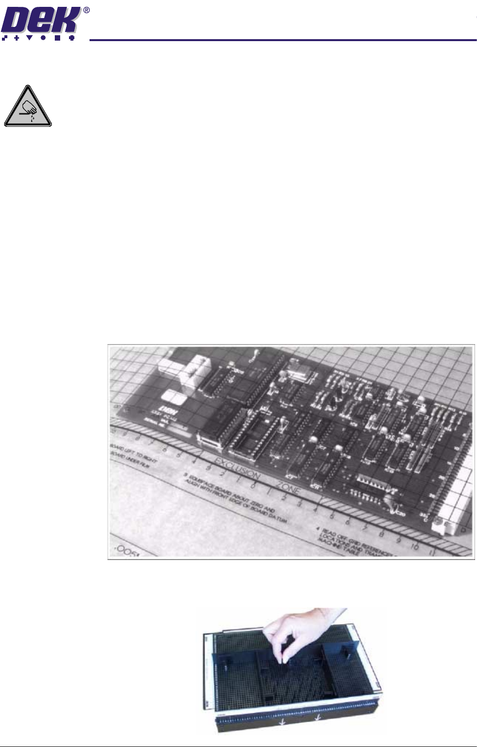 BOARD CLAMPS. EXTREME CARE MUST BE EXERCISED WHEN WORKING IN