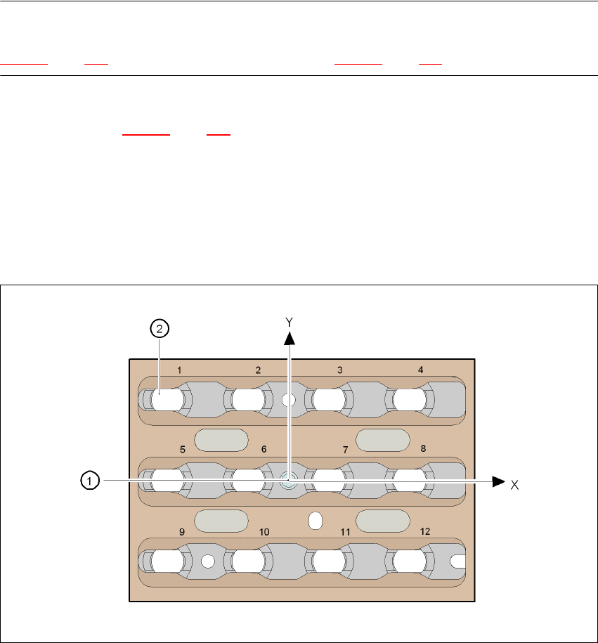 Jokaisella pipetinvaihtajan makasiinilla on paikoitusmerkki paikan tunnistusta varten.