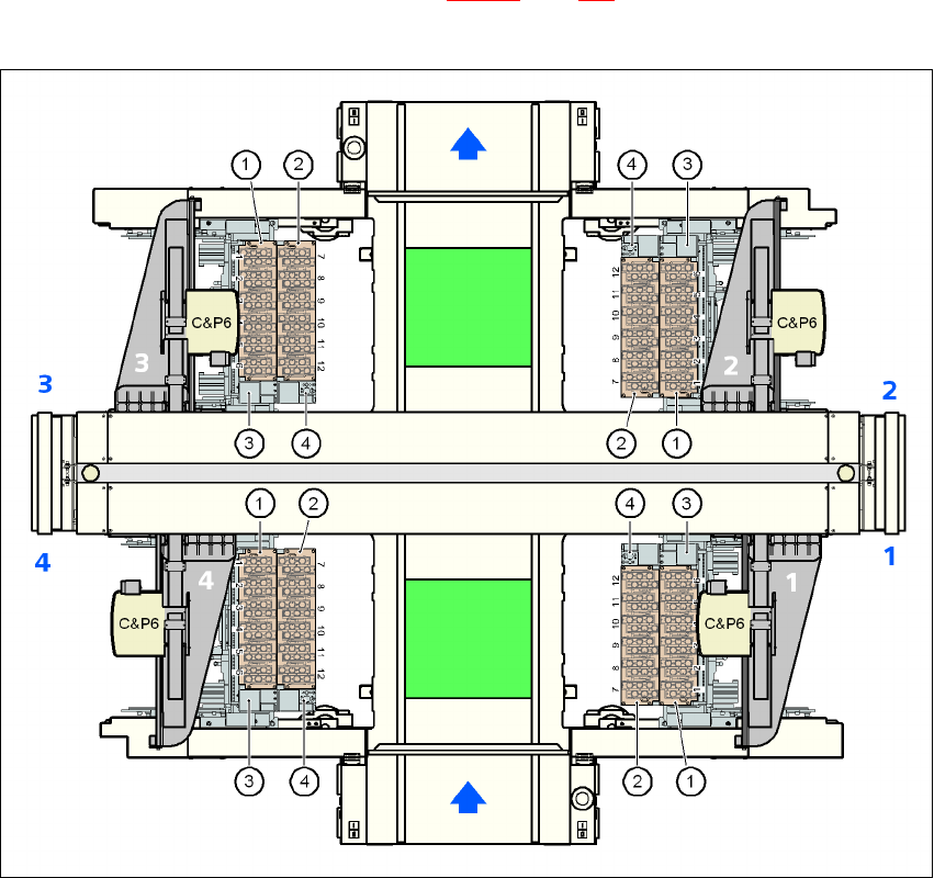 Asetuspaikoille 1, 3 ja 4 voidaan asentaa 6-segmentti-Collect&Place -päätä varten kulloinkin kor-