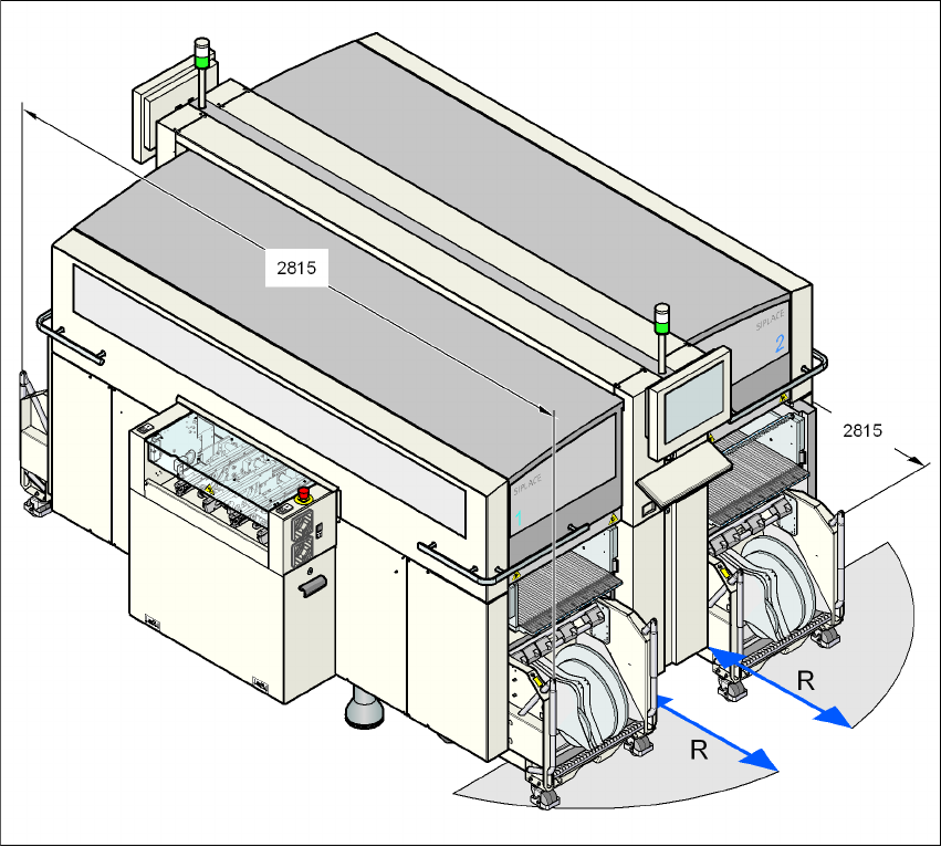 3 Automaatin tekniset tiedot Käyttöohje SIPLACE X-sarja 3.3 Mitat ja paino Alkaen ohjelmisto v ersiosta SR.605.xx Painos 07/2008 FI 114 3.3.4 Komponenttivaunun järjestelyetäisyys 3.3.4.1 Komponenttivaunun järjestelyetäis…