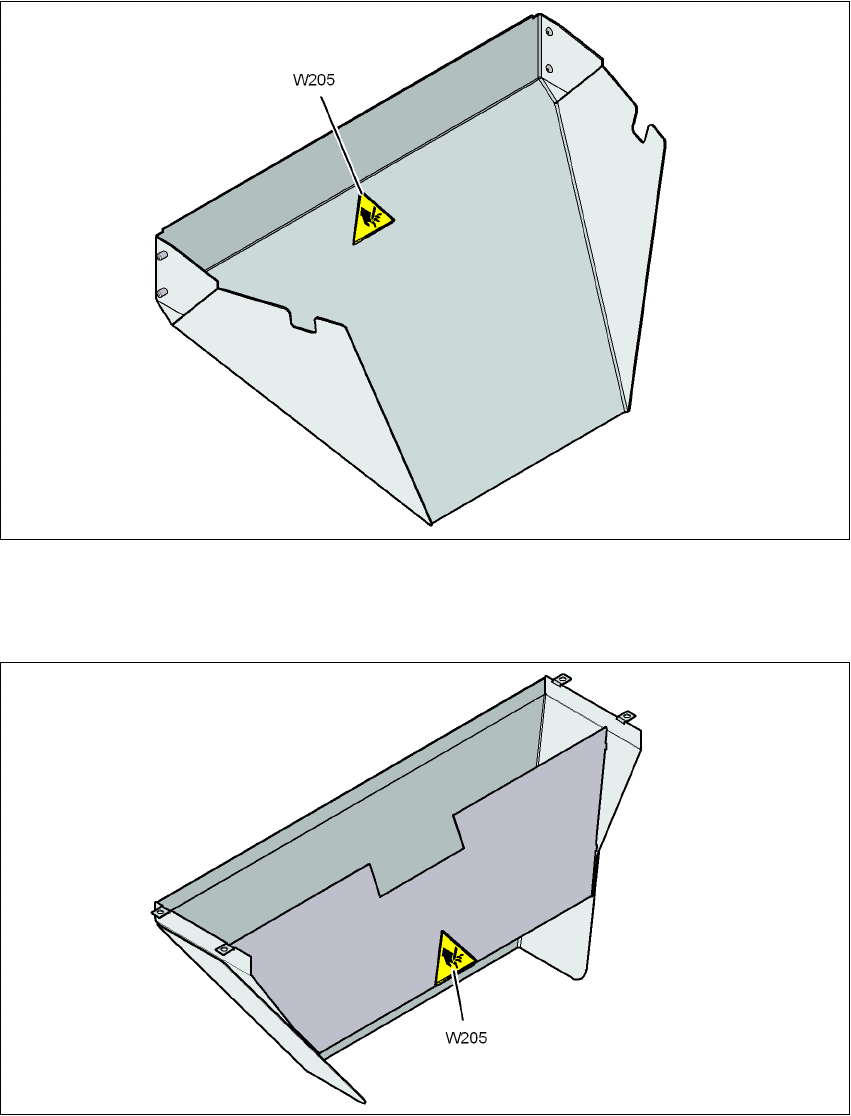 2.2.3.4 Varoituskyltti W205 nauhajätteen laskukourussa (X-sarja)