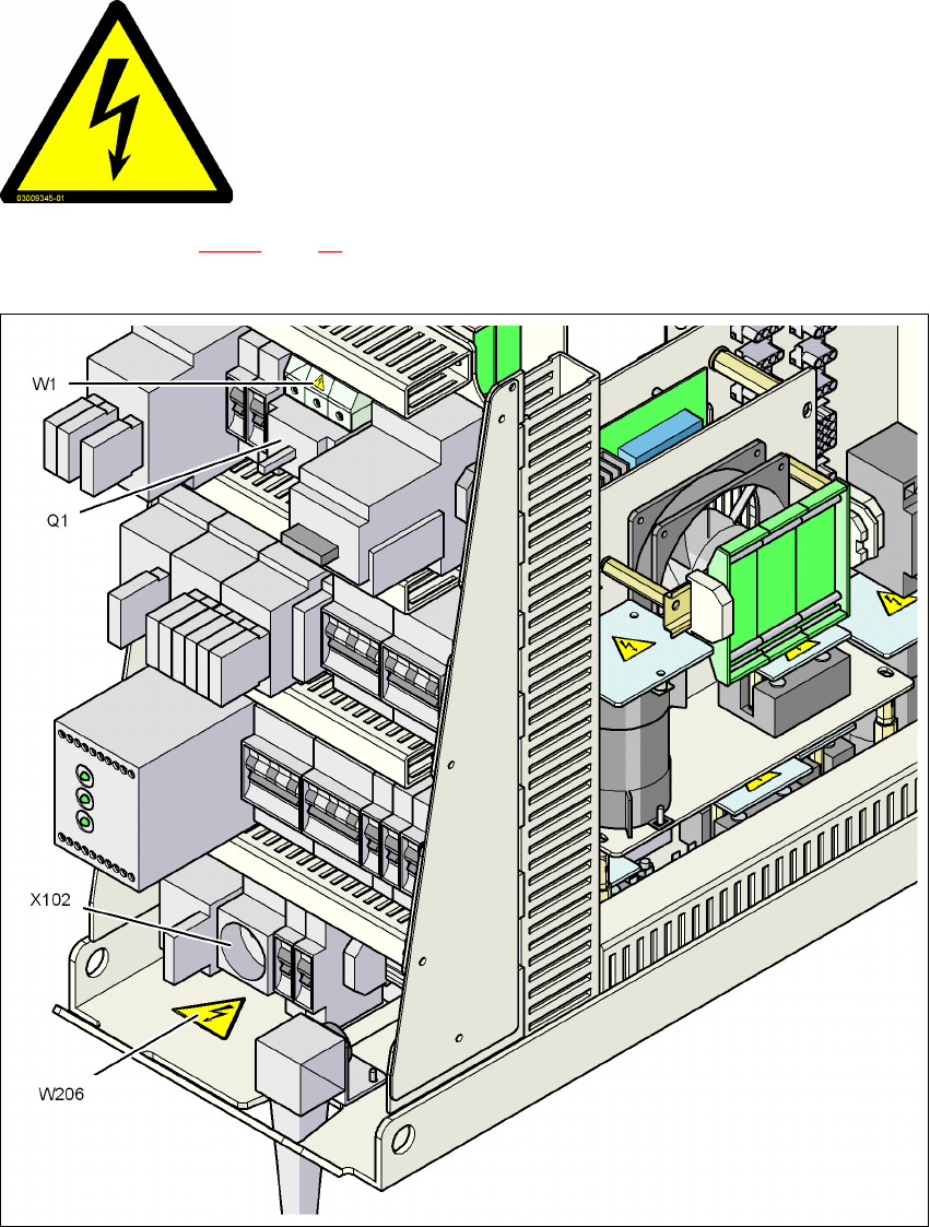 Kuva 2.2 - 9 Varoituskyltit W206 huoltopistorasian X102 vieressä ja W1 pääkytkimellä Q1