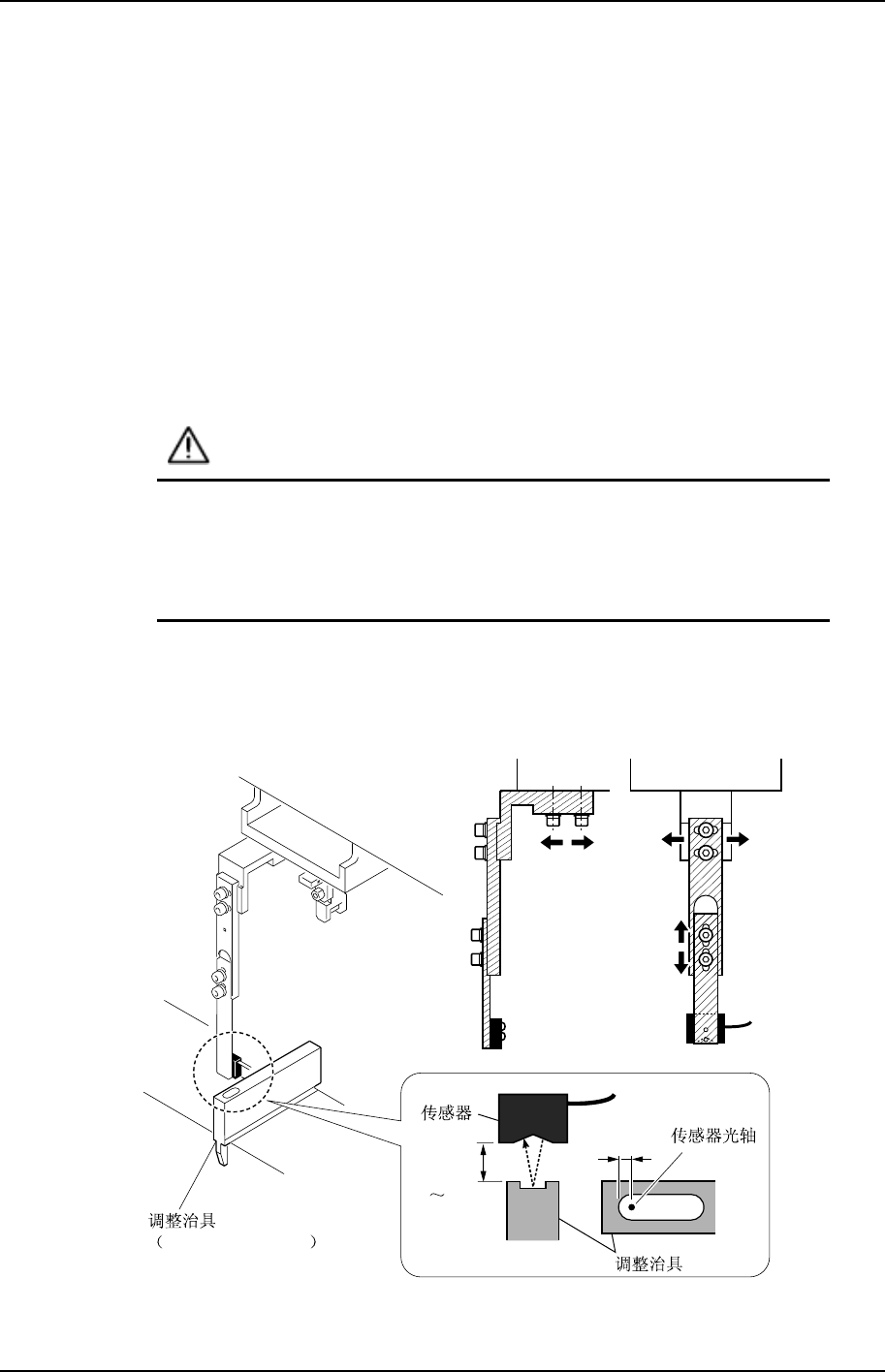 5. 调整传感器的位置,使光轴位于从调整治具的槽部后端开始向前 7mm 处。
