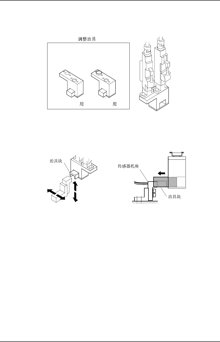 7. 上下左右调整传感器托座的位置,使之能够顺利地进入治具块凹槽。