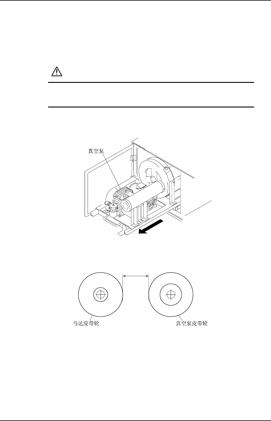 2. 用游标卡尺测定真空泵皮带轮与马达皮带轮之间的距离,记录以备用。