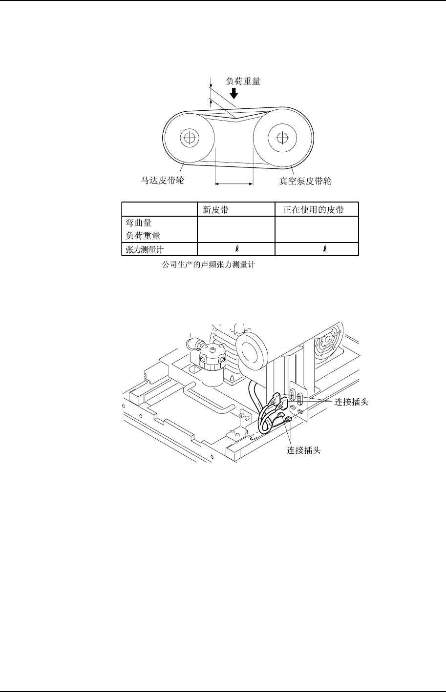 6. 确认交换后的皮带张力,如张力值不在规定的范围之内时,请把马达以 0.1 mm 程度