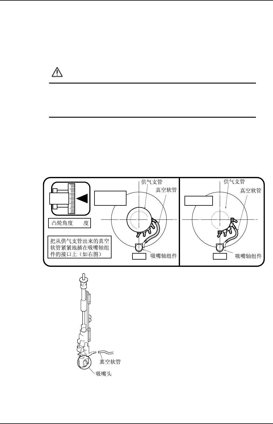 换连接供气支管和吸嘴轴组件之间的真空软管。