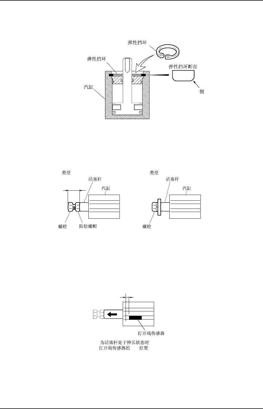 15. 使活塞杆处于伸长状态,将打开端的传感器从汽缸底部向前部移动直到打开端的传感