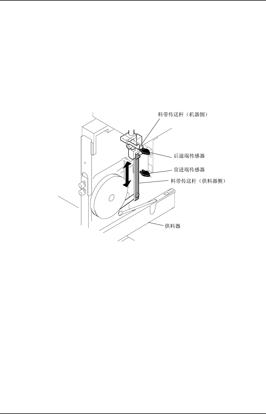 料带传送杆是一个能让安装在供料器上的元件料带前进的机构。通过料带传送杆的上下动作,